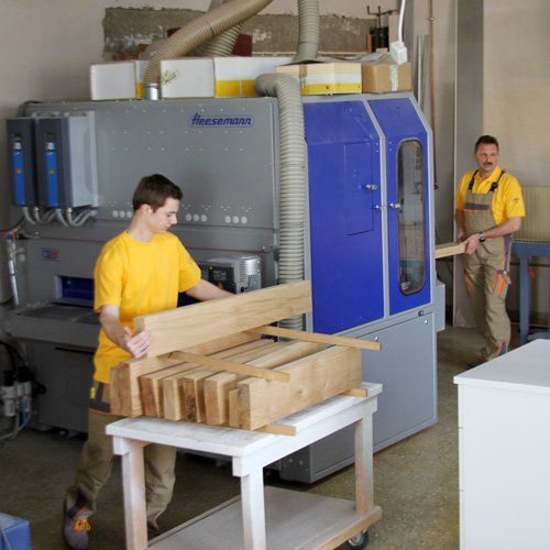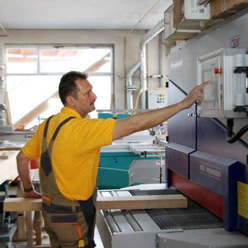 Momentan besitzen wir ein 5-Achs CNC Bearbeitungszentrum, das 2018 von dem 4-Achs CNC Bearbeitungszentrum ersetzt wurde. Zu unserem modernen Maschinenpark gehört seit 2015 auch die große vollautomatische Breitbandschleifmaschine (Mehrzweck-Flächenschleifautomat), mit dieser kann von Hobelrau bis Hochglanz geschliffen werden.